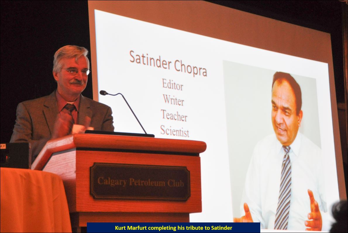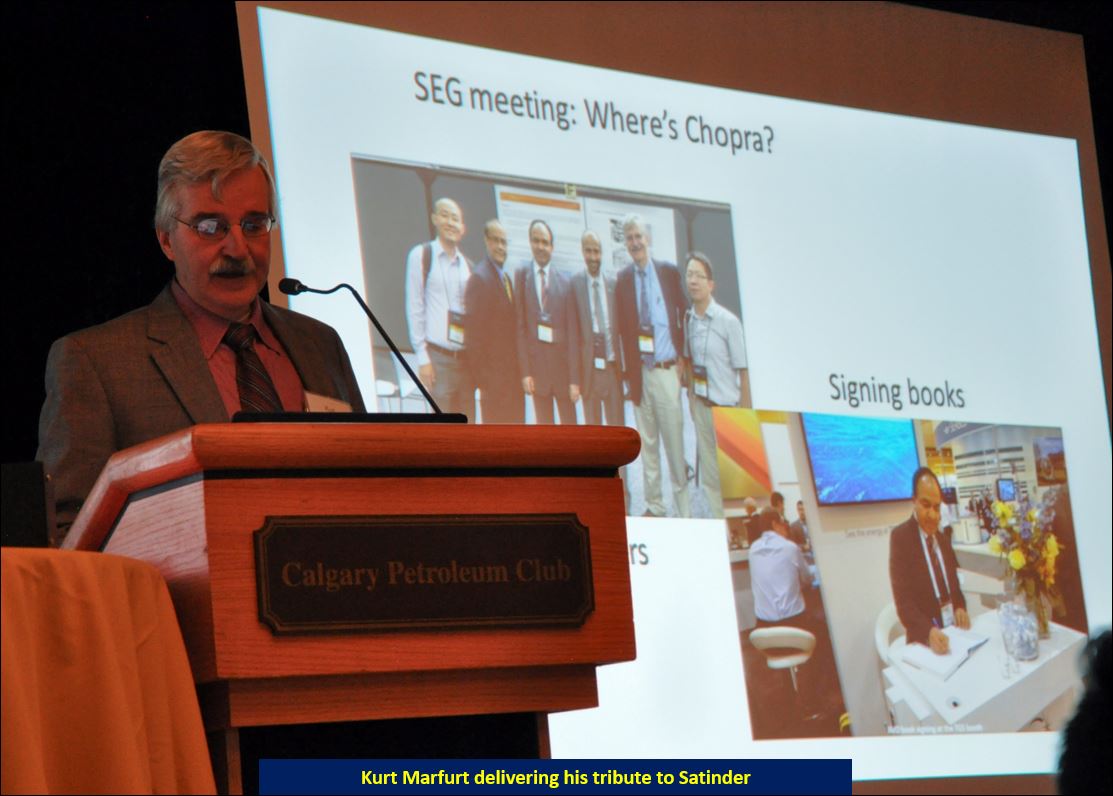 Besides the talks, a tribute is given to the honouree as a sign of respect and admiration for his/her accomplishments. Such tributes are useful for the upcoming geoscientists so that they get to know and learn from the professional lives of the honourees. The tribute this year was given by my good friend, Kurt Marfurt.