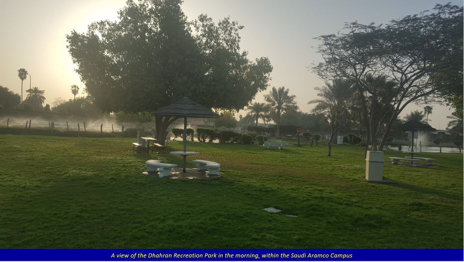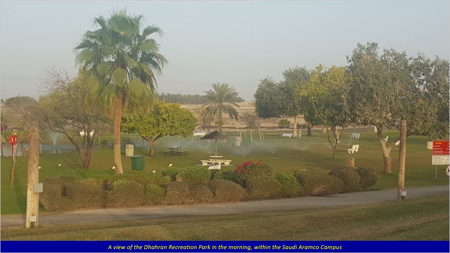 Having come to Dammam from cold Calgary, I liked the pleasant weather during the mornings, though it would get warmer in the afternoons. To make the best of the nice weather, I would go for my morning walks, even though I had to be in my class by 7:30 am. Every morning I would take a different route for my walk, and was quite surprised to see how well the lawns in front of the houses are maintained, what with water being sprayed on them through underground pipes by the time I would set out. There is a very nice Dhahran Recreation Park a short distance from Steineke Hall, and situated alongside Canyon Road, with fountains, lush green gardens and where I found other people coming for their morning walks.