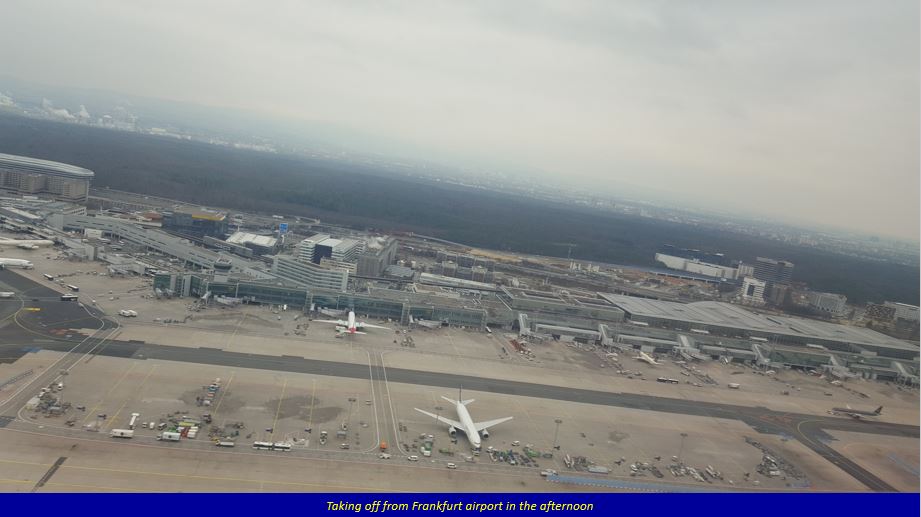 My return journey was comfortable. I took the late night (10:50 pm) flight from Dammam to Riyadh, and after a layover of about an hour, on to Frankfurt. We arrived there at 8 am local time, with the morning haze still making the atmosphere somewhat misty as you see in the photos below.