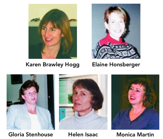 16. Karen Brawley Hogg, Elaine Honsberger, Gloria Stenhouse, Helen Isaac, Monica Martin